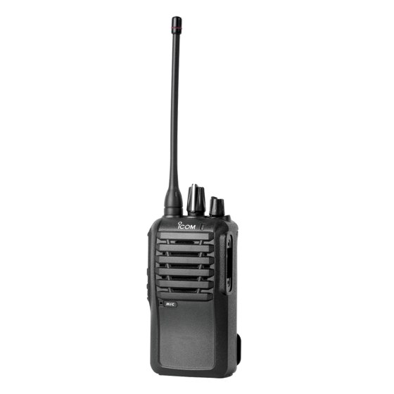Equipo portátil analogo marca Icom banda UHF 450 – 520 Mhz, 16 canales con scan, potencia parlante 800 mW, señalización MDC1200, construcción robusta, norma protección IP54, potencia máxima de 5 watts, alerta de baja batería, ahorro de batería, . Incluye: cargado rápido, batería de Ion de litio de 2000 Ma/hr, antena y pinza
